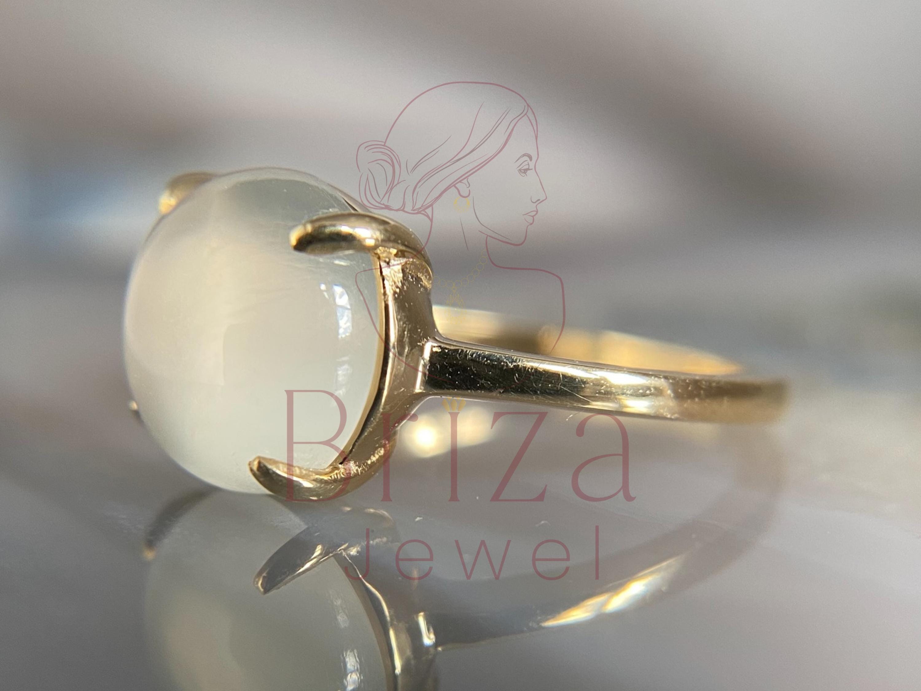 Moonstone Gold Ring | Round Cabochon Moonstone Ring | June Birthstone Jewelry | Dainty Stacking Ring | Boho Minimalist Gift for Her