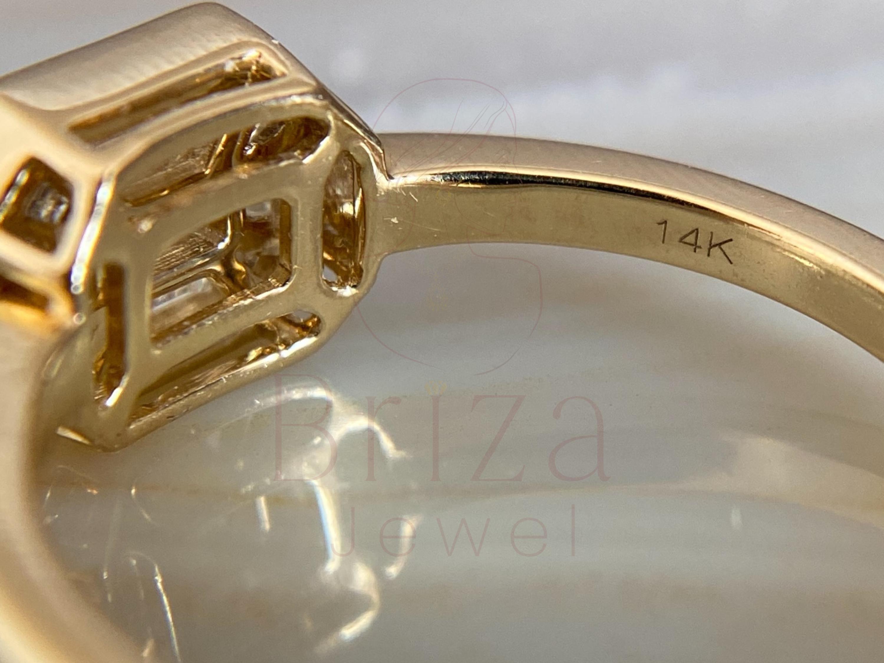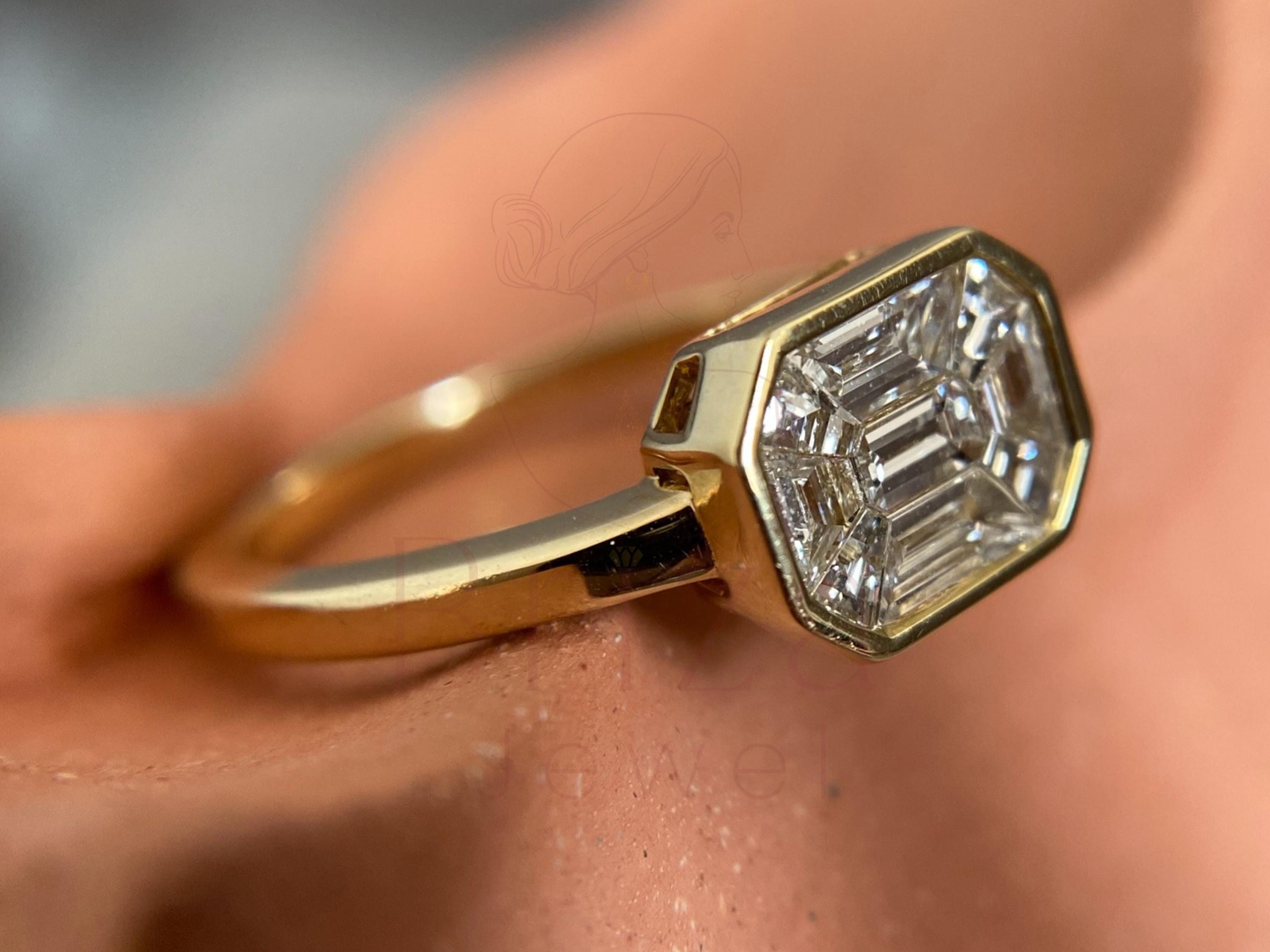 This emerald cut diamond ring showcases timeless elegance with a sleek bezel setting in 14K yellow gold. The unique step-cut facets of the emerald diamond create a mirror-like brilliance, symbolizing clarity and strength β€” a perfect choice for a modern engagement ring or a refined statement piece.