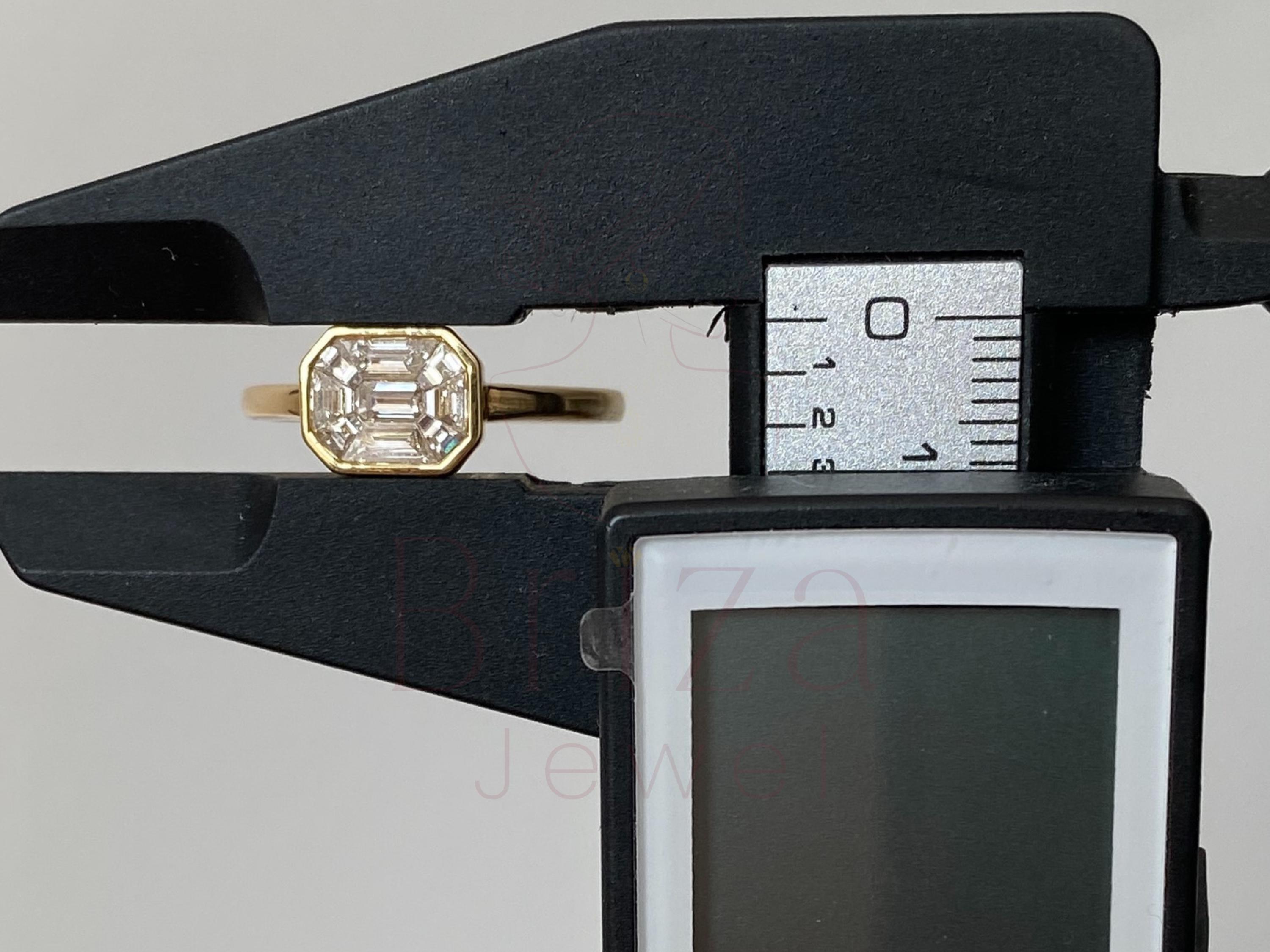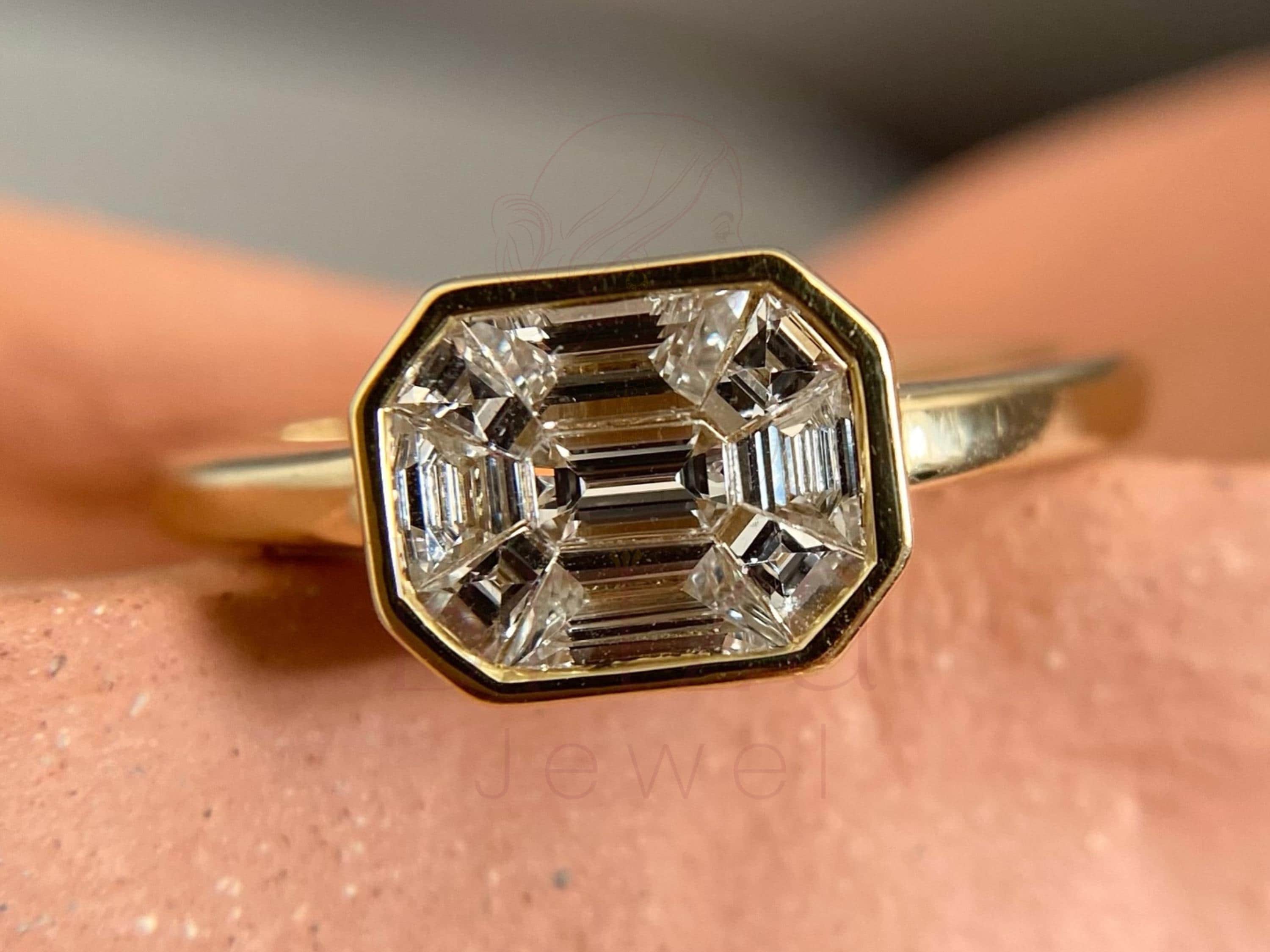 Emerald Cut Diamond Ring, 14K Gold Bezel Setting, Modern Engagement Ring for Women